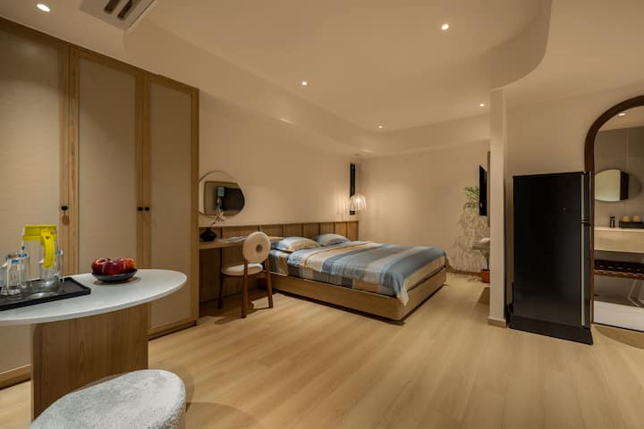 This moderately sized apartment is perfect for couples, featuring a comfortable 1.8m bed and all modern amenities you’d expect from our apartments. The enclosed layout creates a warm, inviting atmosphere, ideal for a romantic or relaxing stay. Enjoy great value with an affordable price, plus easy access to shared facilities like a free laundry room and a relaxation area on the 7th floor. Book now for a memorable stay just over 100m from My Khe Beach!Other things to note* Essential Information (Add-on services and Facilities Guide). Here’s essential info for a smooth stay:Towels are replaced/supplied daily at 9:00 AM. If you prefer a different time, please let us know in advance (applies to stays of 2 nights or more). AC/TV: Use remote in room. Kitchen: Please clean after use. Cookware in Kitchenites. Laundry: Washer and Dryer at 6th floor – Free service. Motobike Parking: Free at front of apartment.?? Important Rules:- NO smoking indoors. Cleaning fee: 1.000.000 VND if violated.- Quiet hours after 10:00 PM. Guests staying in the apartment must not make noise that affects other guests; If noise exceeds the prescribed level, they will be punished according to current law.- Lock windows/doors when leaving.- Report issues immediately (electrical leak, water leak). Fire Safety: Extinguisher at font room’s gate, exit by stairs in front of the room corridor.