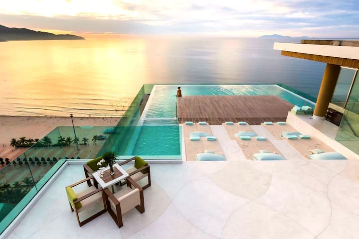 Live Where the View Never Gets Old.Experience POOL AND GYM access in a stunning 2-bedroom 2 bathroom apartment in Da Nang Just a 1-minute walk to the beach, a 9-minute drive to the city center, and only 15 minutes from the airport, this amazing 10th-floor apartment offers spectacular views and easy access to everything you need.If this is your first time with us, don’t worry, I’m as your local buddy always be available to answer any questions.The space? MASTER BEDROOM with large window:+ King sized bed + Private bathroom, water heater with toiletries provided+ Dressing table set with mirror+ LCD TV completed with national broadcast and super-fast internet+ Clothes storage with hangers and hair dryer on request? SECOND BEDROOM with hotel furnished standard:+ 2 Single beds+ Private bathroom, water heater with toiletries provided+ Clothes storage with hangers? LIVING ROOM with another large window and sea-view balcony: + 01 Grand sofa + Tea table+ Flat-screen TV completed with national broadcast and super-fast internet+ Balcony coffee table set+ Extra decoration available for little fee ? KITCHEN and DINING AREA:+ Stove and Microwave+ Cooking and dining utensils for 4 people+ Coffee/tea maker+ Electric kettle+ Free bottled water+ Fridge? OTHER AMENITY that are available for additional fees: + Infinity Pool (24th floor), + Gym with full machine (23rd floor)+ Restaurant, Rooftop Bar and Spa+ Washing machines and Dryers (B floor). ? SAFETY: The building has a fire protection system and security cameras in public areas for security purposes.? PARKING: Parking for motorbikes and bikes with fee in the basement (B floor). Paid car parking is on the opposite side of the building. Cars are allowed to park for free 2-3 hours in front of the building nearby.Guest accessThe property is privately owned by me so the check in process could be somehow different:+ Please DO NOT check-in at the hotel reception. Our team members will assist your check-in at the lobby. + Luggage storage is not guaranteed and requires advance notice.?+ Guests’ passport photo is required during check-in.Other things to note- Checkin/Checkout time can be subject to the room availability (please inform in advance, not guaranteed)- Please maintain the good condition of the interior, any losses and damages including card keys will cost you a charge.- Facilities you will benefit such as:+ 3 Modern Elevator+ Central air conditioner system+ Self-check-in with smart key