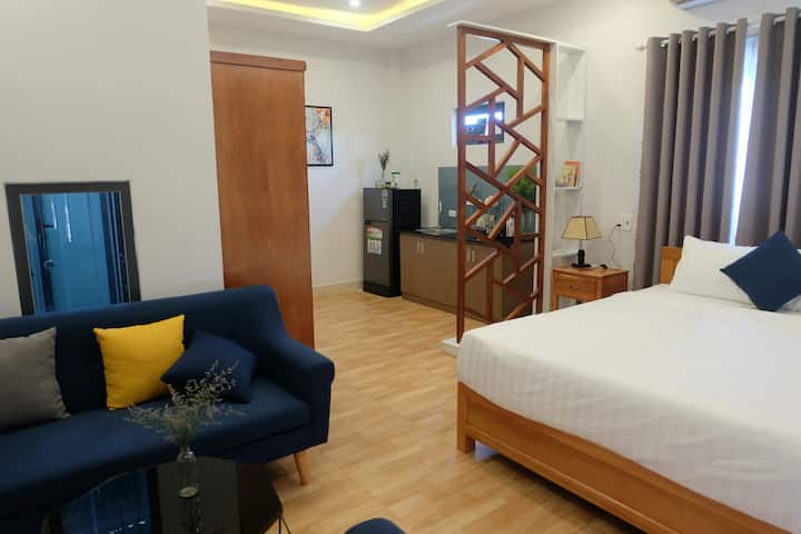 New nice studio apartment which very close to the beach.The spaceA private room with large prive rooftop face to My Khe beach. Smart TV, washing machine, iron, hair dryer, and full kitchen stuff are provided